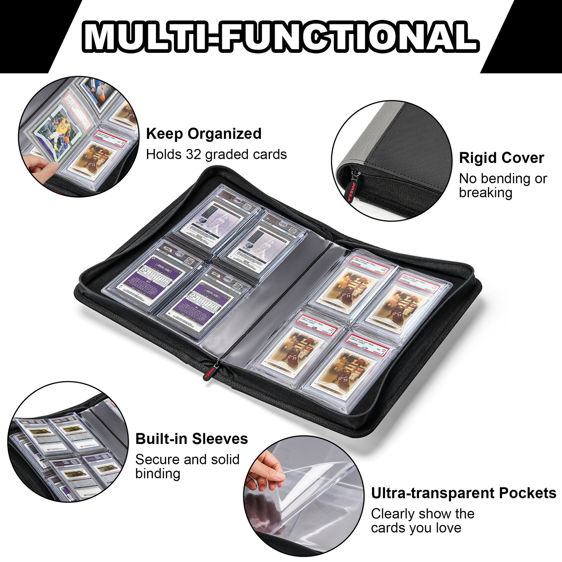 Preza binders and cases fit all card sizes for seamless storage solutions.